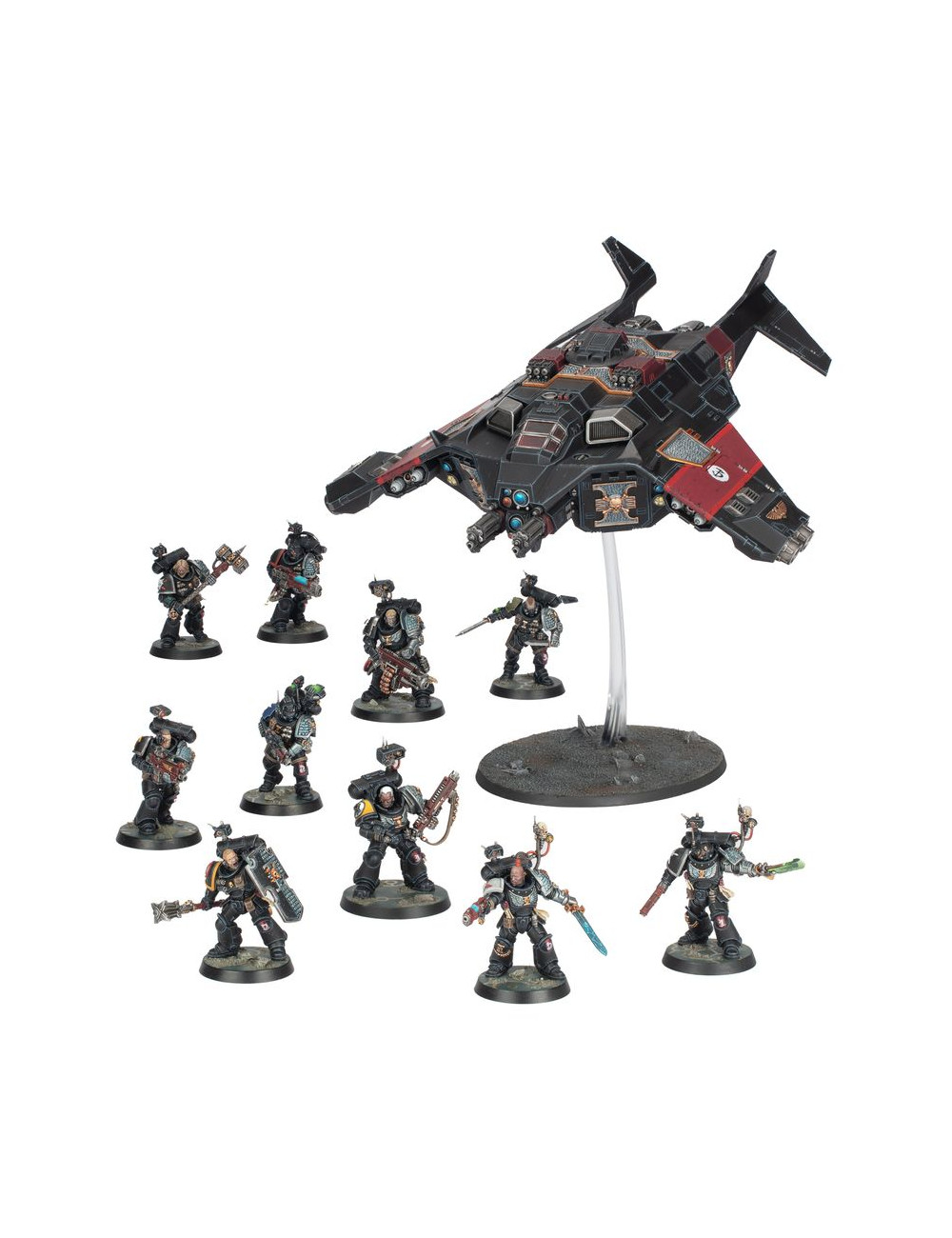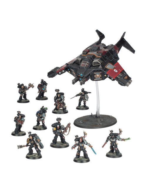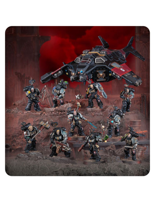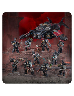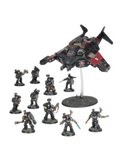 Esta completísima caja es ideal para empezar o ampliar una colección de Agentes Imperiales o Vigías de la Muerte de Warhammer 40,000 de forma más económica que adquiriendo los kits por separado. Incluye suficientes Marines Espaciales para montar dos unidades pequeñas de Vigías de la Muerte o una unidad más grande, junto con un Corvus Blackstar, una aeronave exclusiva de este Capítulo, equipada con tecnología esotérica que oculta su silueta y armada con un variado arsenal de armas pesadas para proporcionar apoyo a las tropas en tierra tras su desembarco. En conjunto, conforman una fuerza rápida y letal, preparada para enfrentarse a los múltiples horrores de la galaxia.