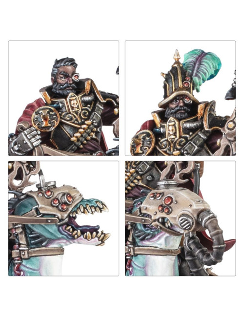 El kit incluye 2 cabezas para Kroyle —una con casco y otra descubierta— y 2 para su montura: una con su capucha de obediencia completa y otra con las fauces libres y preparadas para atacar.
