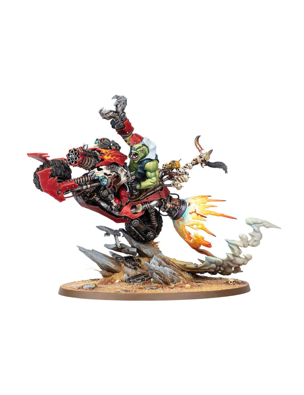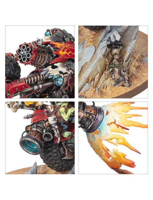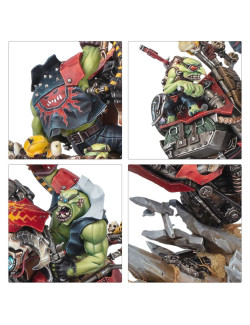 Con este kit multicomponente de plástico puedes montar a Wazdakka Gutsmek, un kaudillo en moto para tus ejércitos orkos de Warhammer 40,000. Esta dinámica miniatura luce de maravilla encabezando tu horda, especialmente si te van las unidades rápidas, ruidosas y con ganas de gresca. Gutsmek solo le pide una cosa a los chikoz que lo siguen: ¡que aguanten su ritmo!
