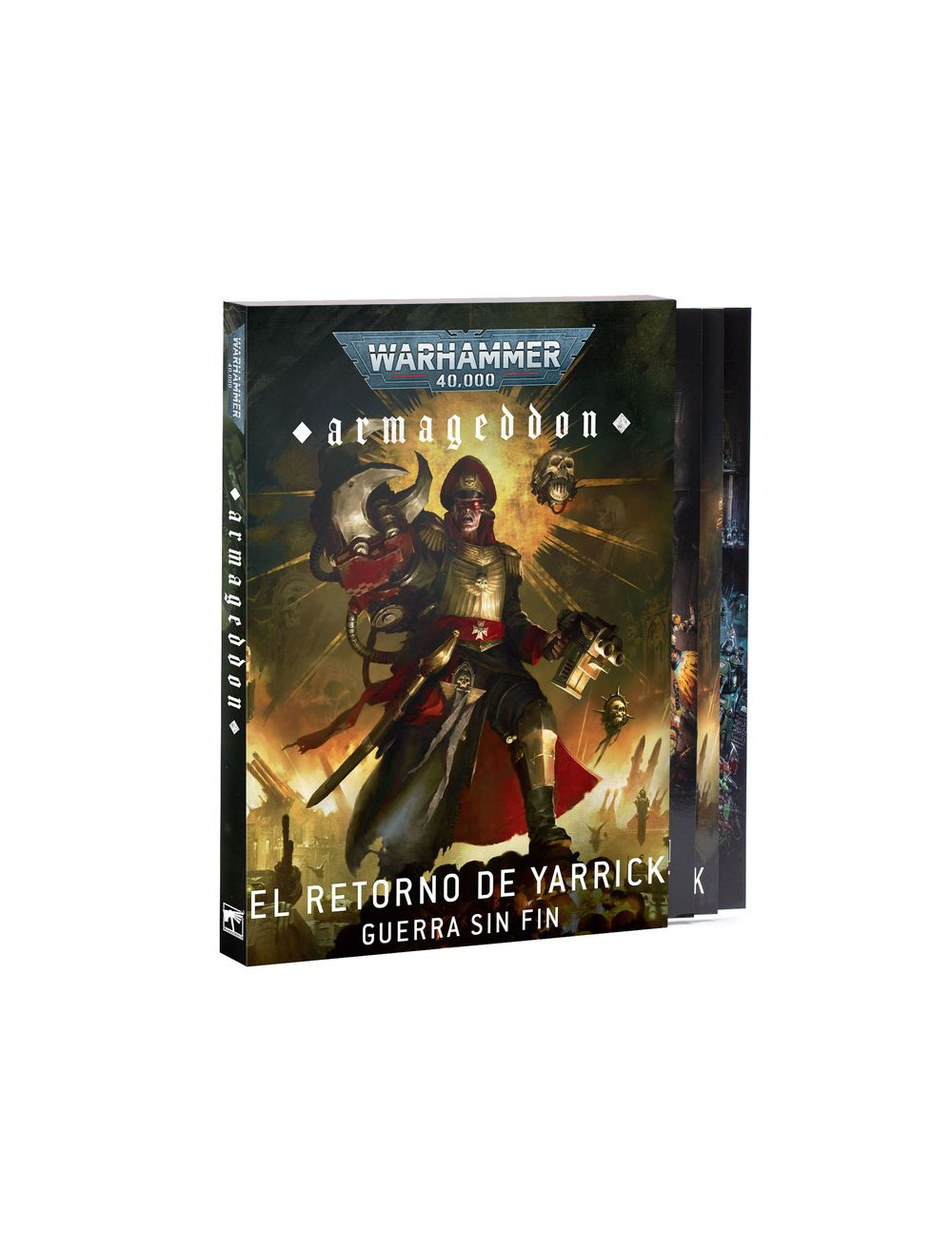 – Armageddon: El retorno de Yarrick – Un libro de 80 páginas y tapa blanda con la historia y trasfondo de Armageddon, los Orkos que no cesan de intentar invadir el planeta, y los aguerridos defensores que tratan de repelerlos.