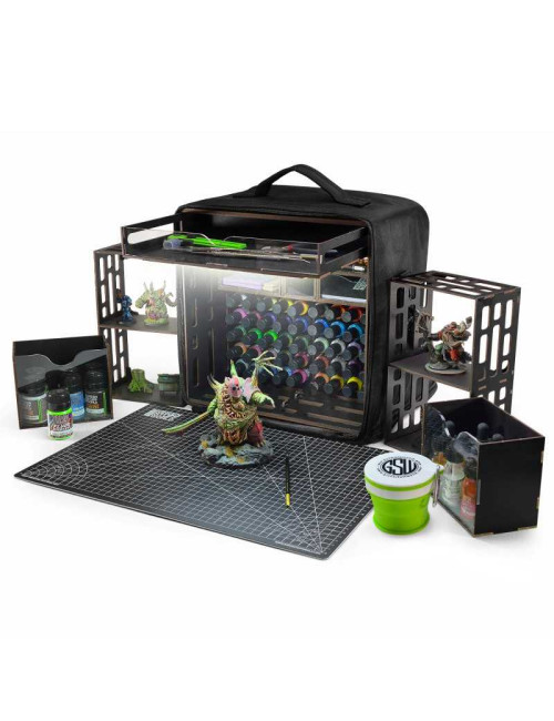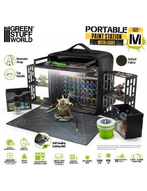 Descubra la estación de pintura portátil ultracompacta Green Stuff World, una hobby paint station ligera y lista para viajar, diseñada para pintores de miniaturas, modelistas y aficionados a las manualidades que desean la máxima organización en el mínimo espacio. Su base está optimizada para ocupar solo 30 × 30 cm, pero se despliega hasta convertirse en una configuración sorprendentemente completa, perfecta para escritorios domésticos, sesiones de pintura con amigos, clases de manualidades y eventos.