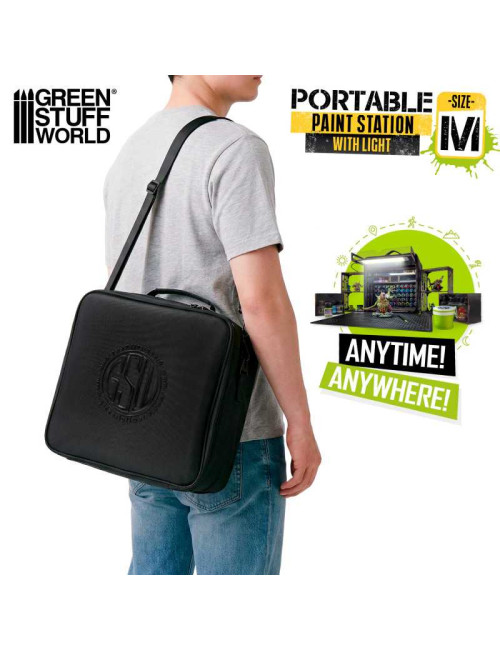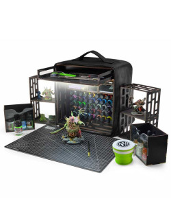 Diseñada para viajar y perfectamente compatible como paint station Warhammer, toda la estación se guarda perfectamente en un estuche de transporte compacto fabricado con tejido Oxford acolchado, ligero y resistente, para una mayor durabilidad. La correa cruzada incluida facilita su transporte a torneos, talleres o reuniones de pintura sin necesidad de bolsas adicionales.