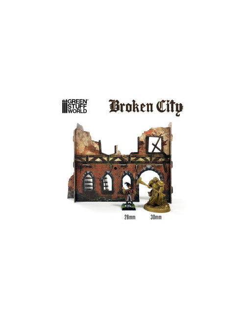 Los complejos detalles en relieve, la variedad de texturas y el diseño artístico del conjunto permiten representar con gran realismo una ciudad medieval devastada: paredes derrumbadas y ennegrecidas por el fuego, tablones resquebrajados, suelos con manchas de batalla, tejas rotas, ladrillos desgastados, puertas funcionales que se abren y cierran, e incluso vegetación descuidada que aporta profundidad a la escena. Cada elemento ha sido cuidadosamente pensado para ofrecer una ambientación inmersiva lista para jugar nada más sacarla de la caja.