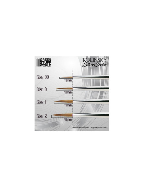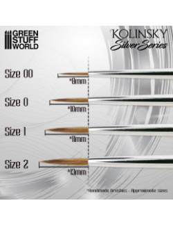 Recomendables para la pintura tradicional, especialmente en técnicas finas como lavados, veladuras, tintas y consecución de degradados, en general medios más diluidos. No recomendados para despuntados o técnicas de pincel seco porque pueden dañar la punta. El pelo Kolinsky garantiza un gran poder de absorción de agua y pintura, así como una excelente elasticidad, lo cual lo convierte en un pincel muy técnico.