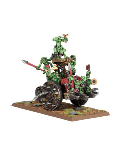 Un Snotling Pump Wagon es poco más que una destartalada cabaña de madera con ruedas. Se mueve gracias al frenético esfuerzo de los Snotlings, que aplastan y atraviesan a los desdichados enemigos que se cruzan en su camino.