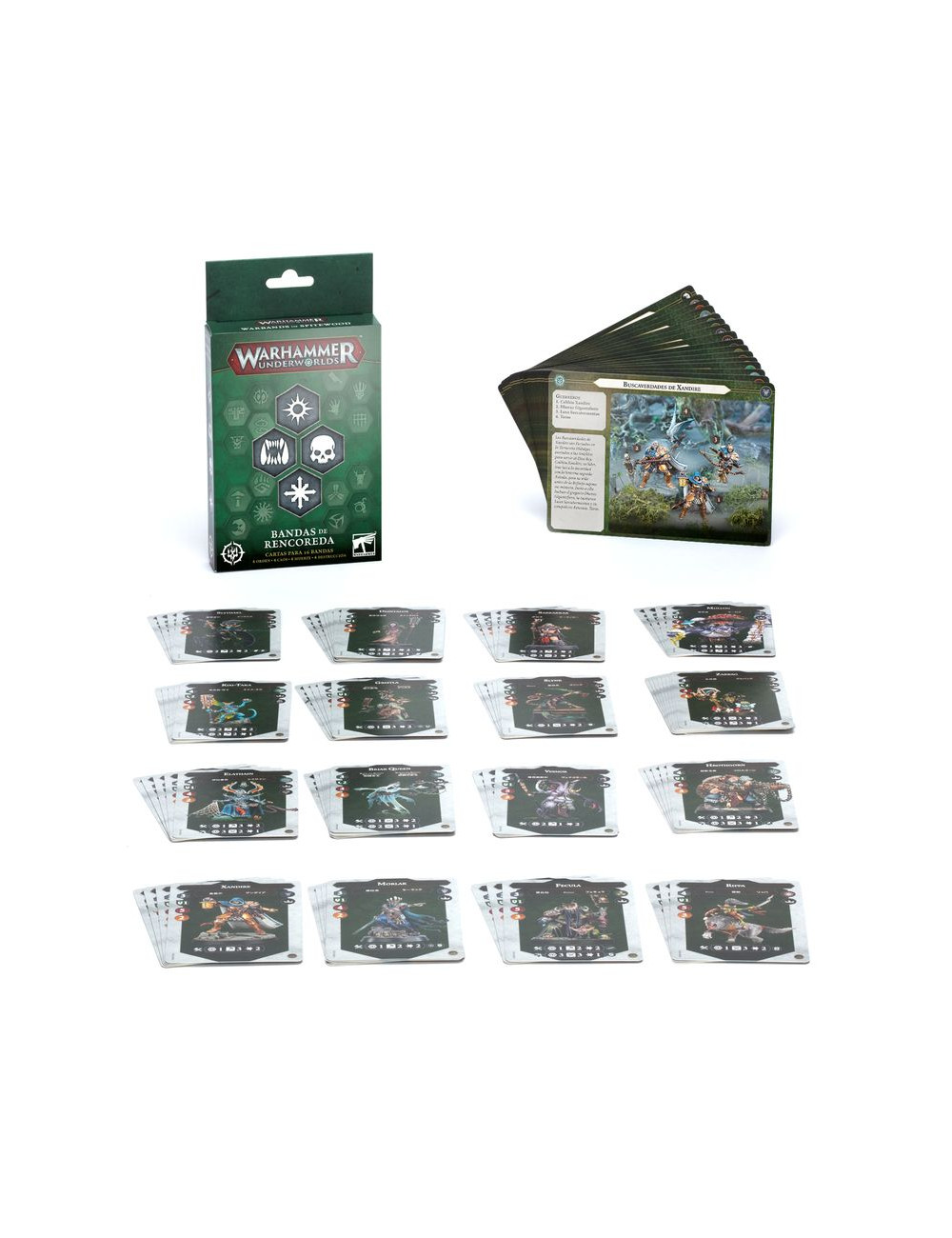 La caja recoge las tarjetas de guerrero y de unidad de 16 bandas de Warhammer Underworlds, para que despliegues las miniaturas de tu colección por la laberíntica Rencoreda.