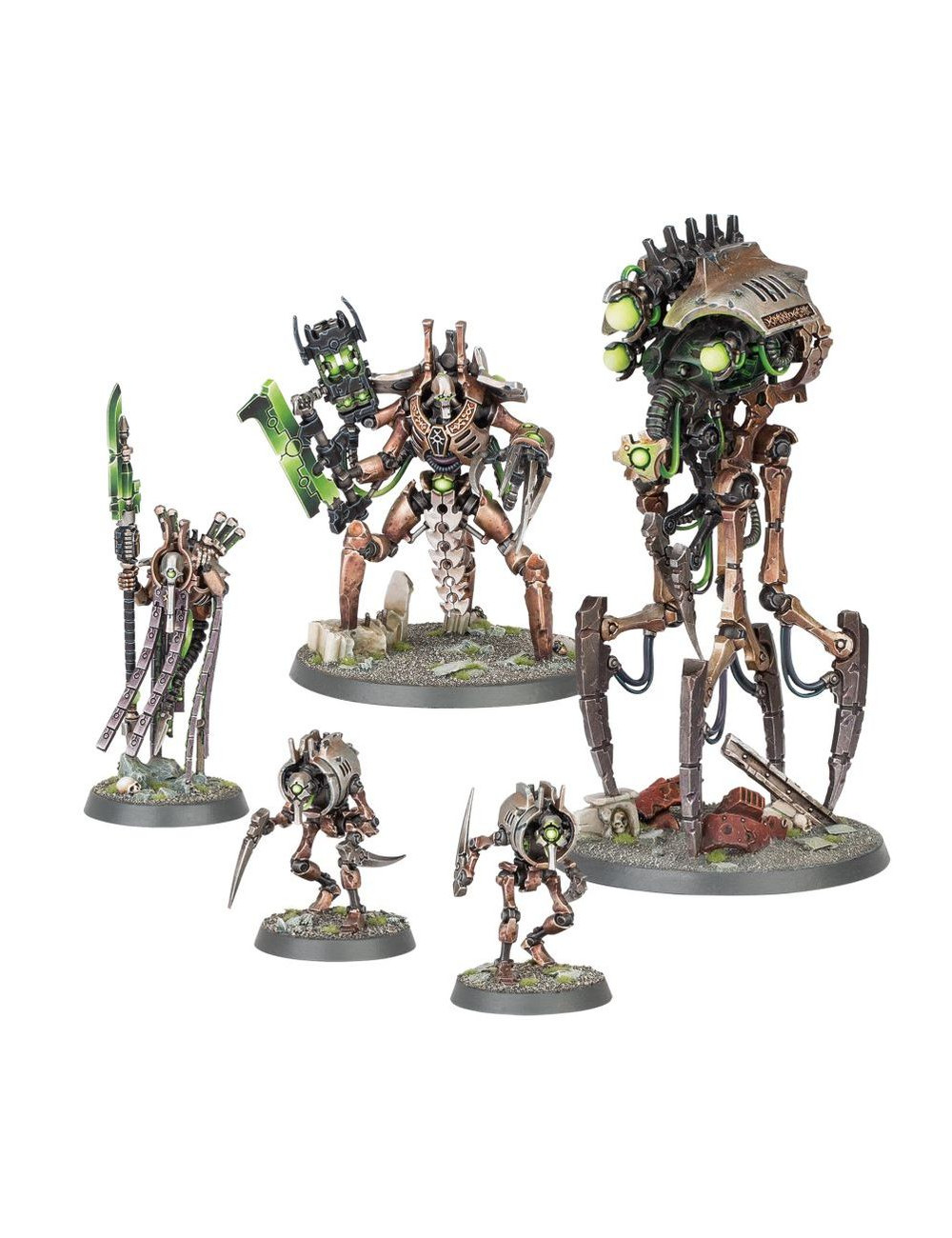Por toda la galaxia, los Necrones despiertan en sus mundos necrópolis, listos para levantarse y reclamar su imperio perdido tiempo atrás. Monstruosas torres de metal se dirigen a la batalla junto a calculadores Criptecnólogos, liderando legiones de guerreros inmortales en una inevitable conquista final.