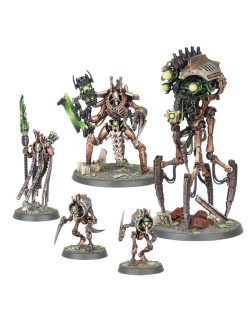 Este set contiene refuerzos para tu colección de Necrones. Por un lado, un Señor Skorpekh que liderará tu fuerza desde el frente, con sus poderosas armas llevando la ruina a tus enemigos. Por otro, un Plasmante, capaz de canalizar energía pura en abrasadoras ráfagas de fuego, mientras que los esclavizados Criptosiervos protegen a su maestro Criptecnólogo. Si alguno de ellos resulta dañado por sus irritantes enemigos, el imponente Reanimador Canóptico podrá repararlo, listo para seguir luchando en nombre del Rey Silente.
