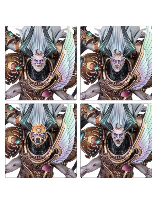 Las miniaturas de la caja son fáciles de personalizar. Fulgrim puede elegir entre cinco rostros diferentes, cada uno más terrorífico que el anterior.
