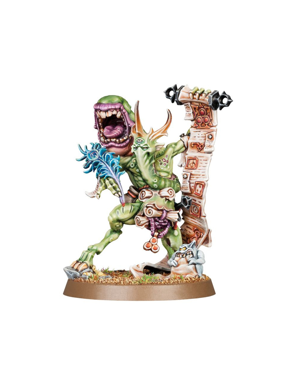 Con este kit multicomponente de plástico puedes montar un Escriba Plagarruina, un malhumorado daemon para tus ejércitos de Agusanados de Nurgle de Warhammer Age of Sigmar o de Daemons del Caos de Warhammer 40,000. Sin dejar de llevar nunca la cuenta, tiene el ojo siempre puesto en los Portadores de Plaga, para que los daemons menores no eludan su deber. Es un líder ideal para un contingente de daemons, además de una amenaza por derecho propio gracias a sus fauces distendidas.