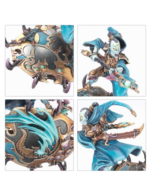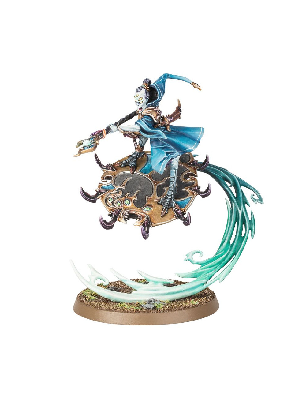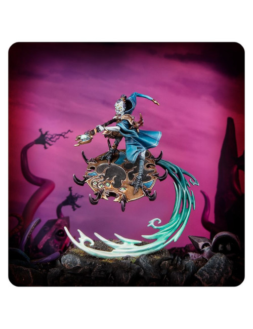 Con este kit multicomponente de plástico puedes montar un Magíster en Disco de Tzeentch, un mago volador para tus ejércitos de Discípulos de Tzeentch de Warhammer Age of Sigmar. Este veloz hechicero es ideal para trastocar los planes del enemigo y seguir el ritmo de los elementos más rápidos de tu fuerza, como los Tzaangors Iluminados, los Tzaangors Fuegocelestes o los Aulladores de Tzeentch. Esta preciosa miniatura es dinámica y está repleta de detalles, como energía mágica, patas aviares mutadas y muchos ojos, que la hacen perfecta para demostrar tu destreza con el pincel.