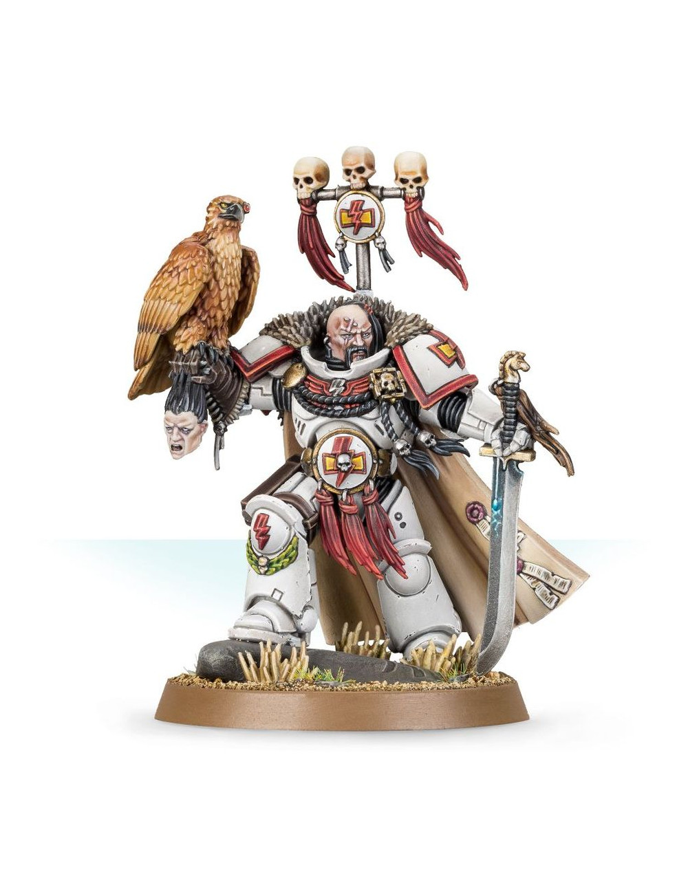 Kor'sarro Khan es un maestro espadachín, y se vuelve aún más letal al enfrentarse en duelo a Personajes enemigos, cuyos cráneos añade a su impresionante galería de trofeos. Como Space Marine Captain, también inspira a los White Scars de su alrededor a realizar hazañas aún mayores. Es un ejemplo de lo mejor del Capítulo de los White Scars, armado con la letal espada Colmillo Lunar y acompañado por el berkut cibernético Anzuq.